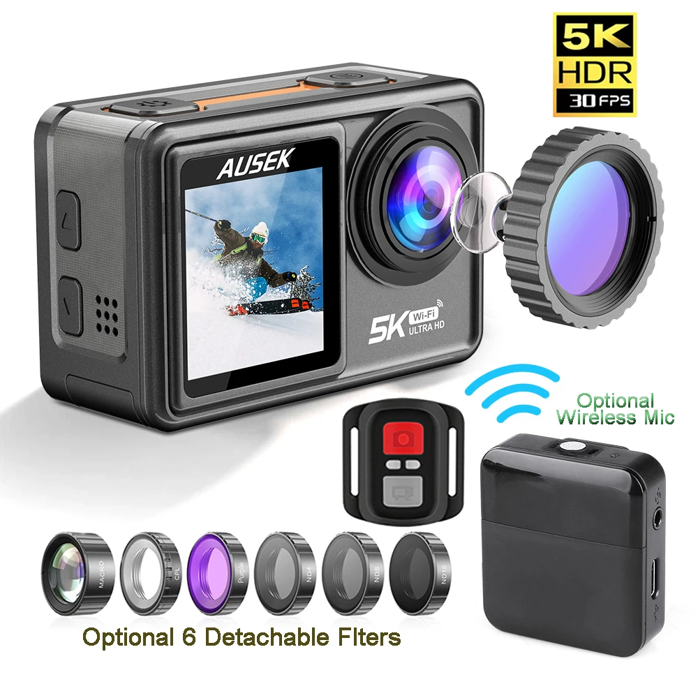 S81TRW Action Camera 5K 4K60FPS 48MP EIS DVR Webcam 2" IPS Dual Screen Optional 6 Filter Wireless Microphone Wi-Fi Sports Cam