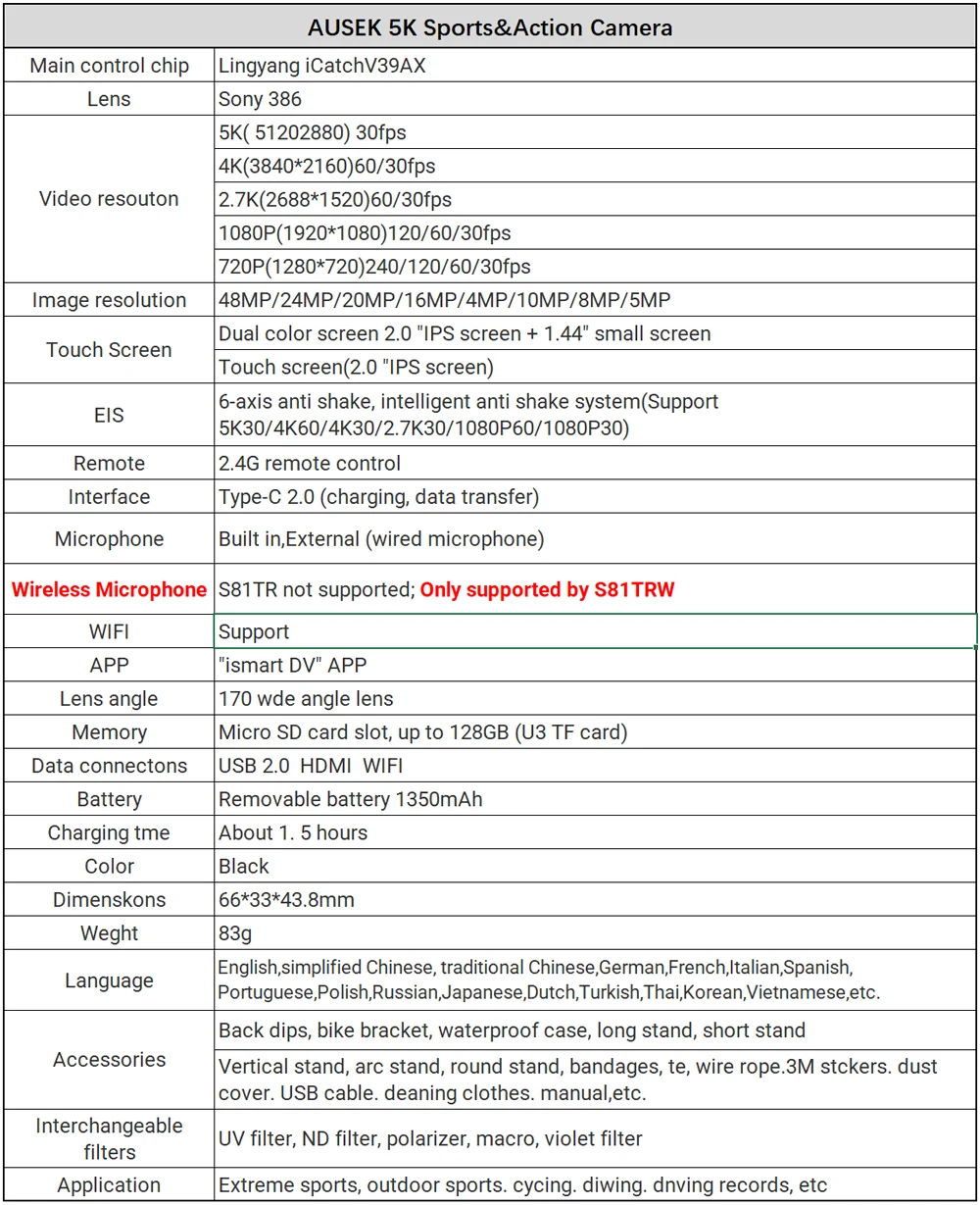 📸S81TR 5K Camera,Supports built-in and external (wired) microphone;Wireless microphone not supported