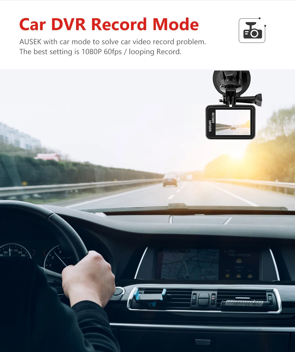 ■AUSEK with car mode to solve car video record problem.The best setting is 1080P 60fps / looping Record.