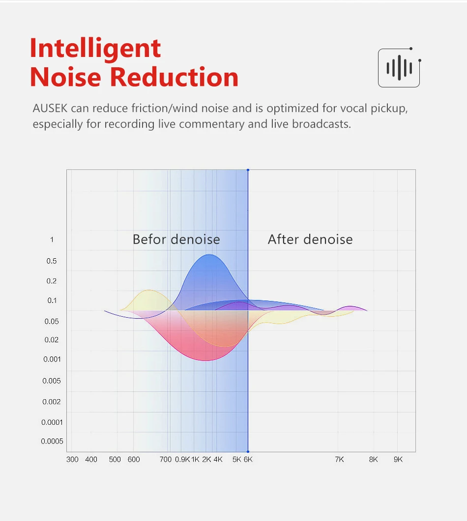 ■AUSEK action camera can reduce friction/wind noise and is optimized for vocal pickup, especially for recording live commentary and live broadcasts.