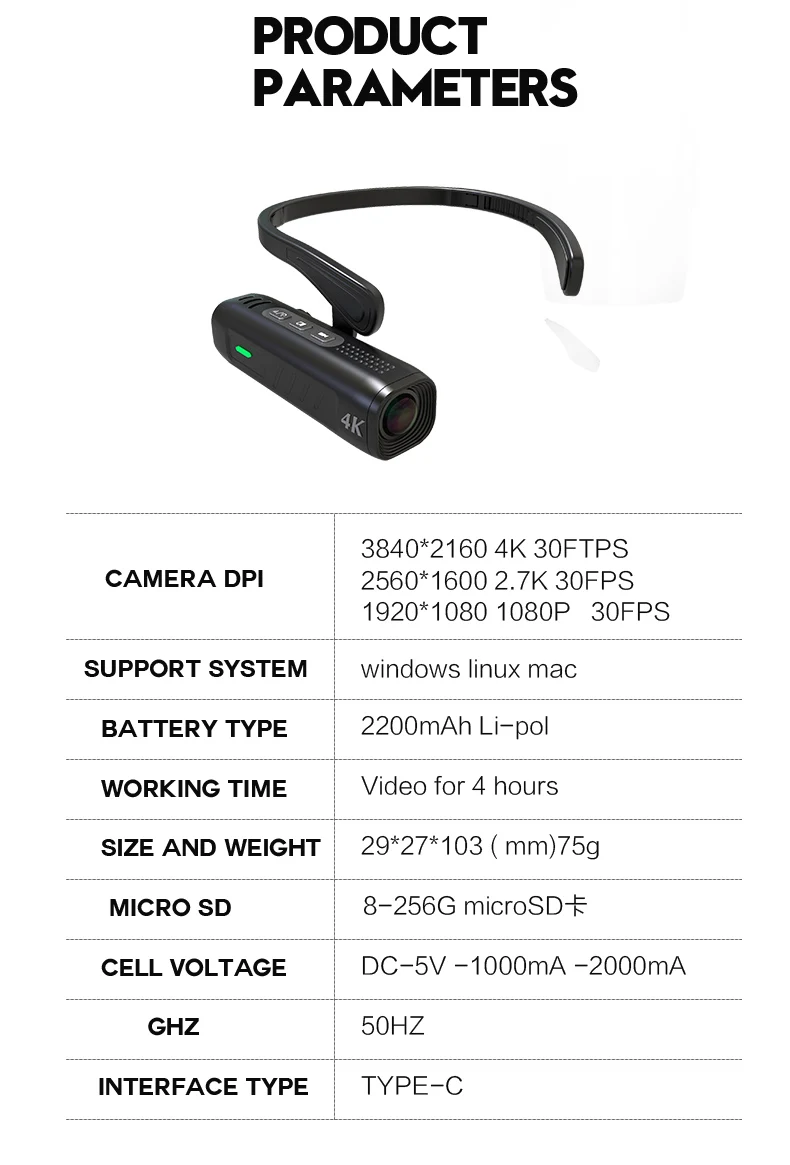 Smart Outdoor Sports 4K Head Mounted Camera WiFi Digital Mini Action Camcorder Profissional Gimbal Anti Shake CCTV Security Cam