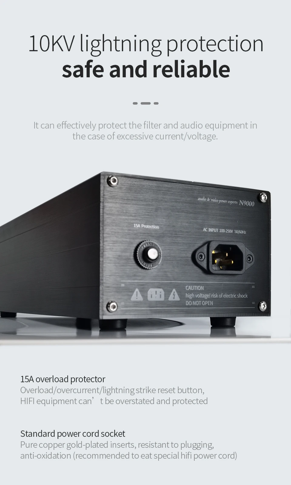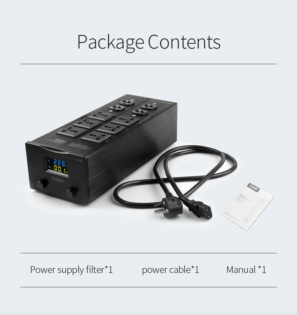 TODN Audio Noise AC Power Filter Power Conditioner Power Purifier Surge Protection with EU Outlets Power Strip