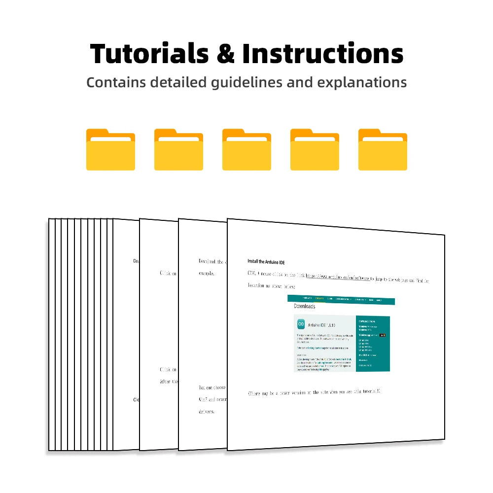 Step-by-Step Instructions and Easy-to-Follow Diagrams:Building your smart system has never been easier. The kit includes step-by-step instructions and easy-to-follow diagrams, guiding you through creating various projects. From simple LED blinkers to complex IoT devices, you can explore and learn at your own pace.