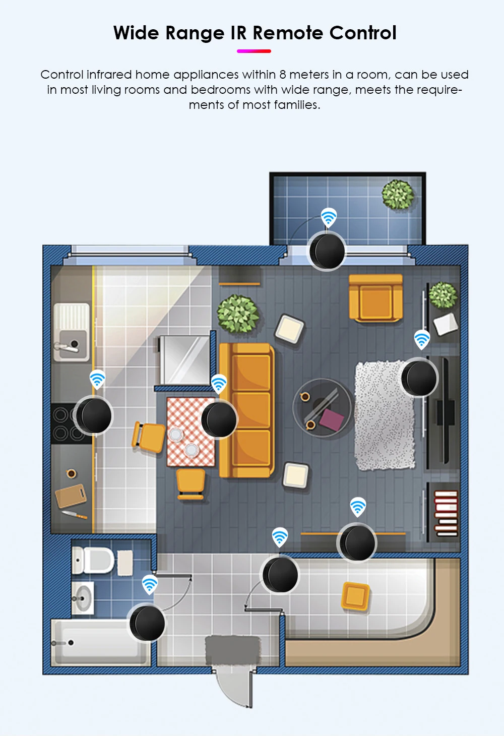 Note: Not compatible with the home appliances which use RF or BLUETOOTH remote control.