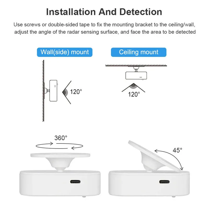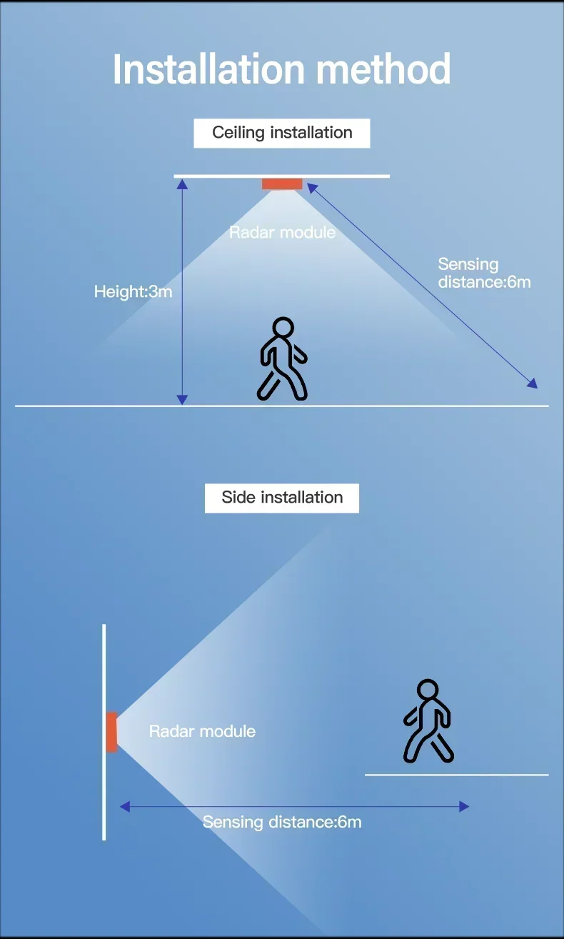 Featured as human presence,human static,human micro motion and human movement motion detection to detect the presence or absence of people in the area,even to detect the static state such as personnel sleeping accurately with mmWave Radar Detection featured.