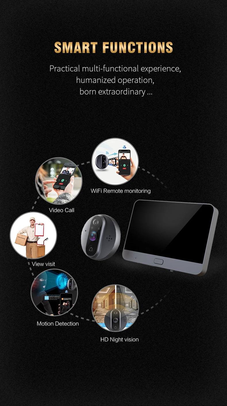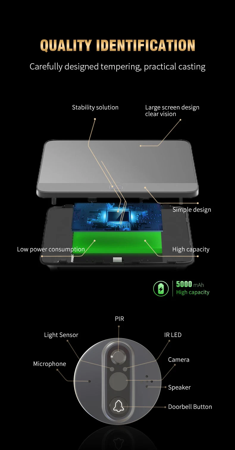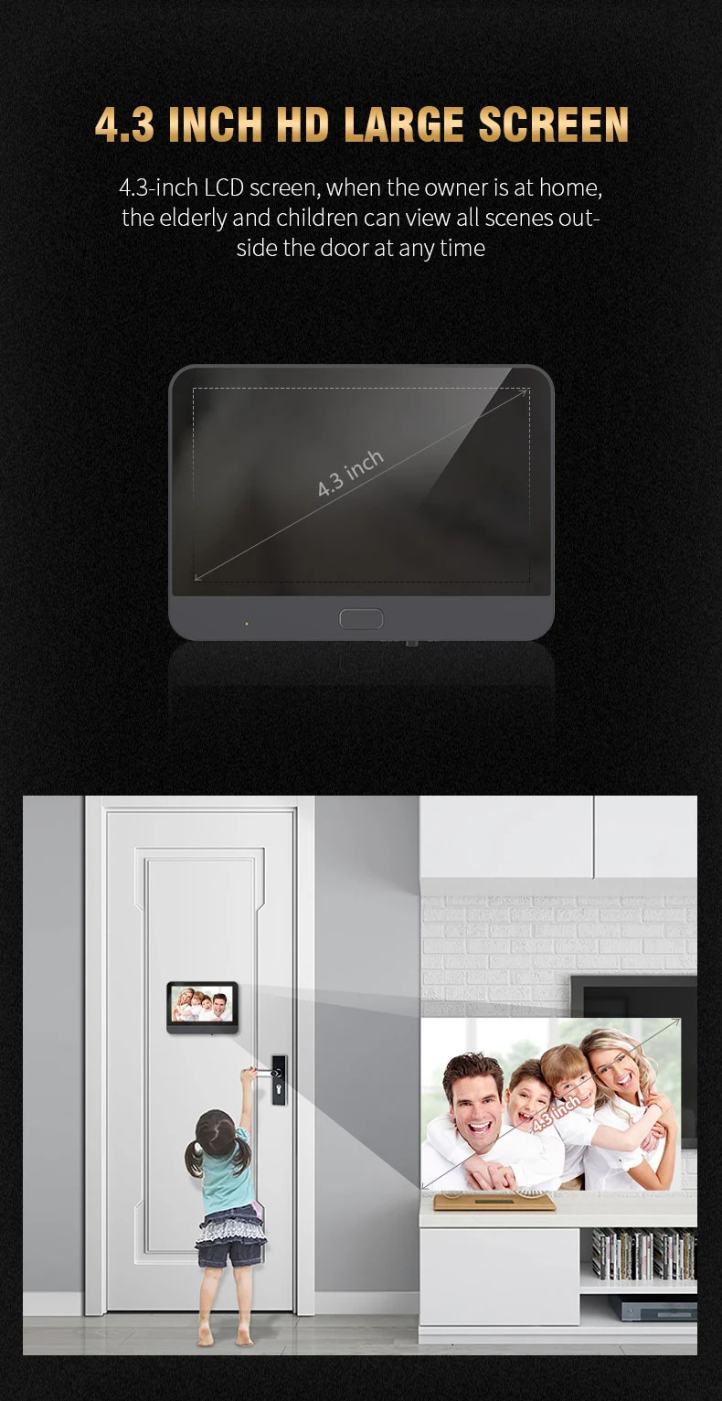 >>>4.3 inch HD LCD lareg screen,when the owner is at home,the elderly and children can view all scenes outside the door at any time.