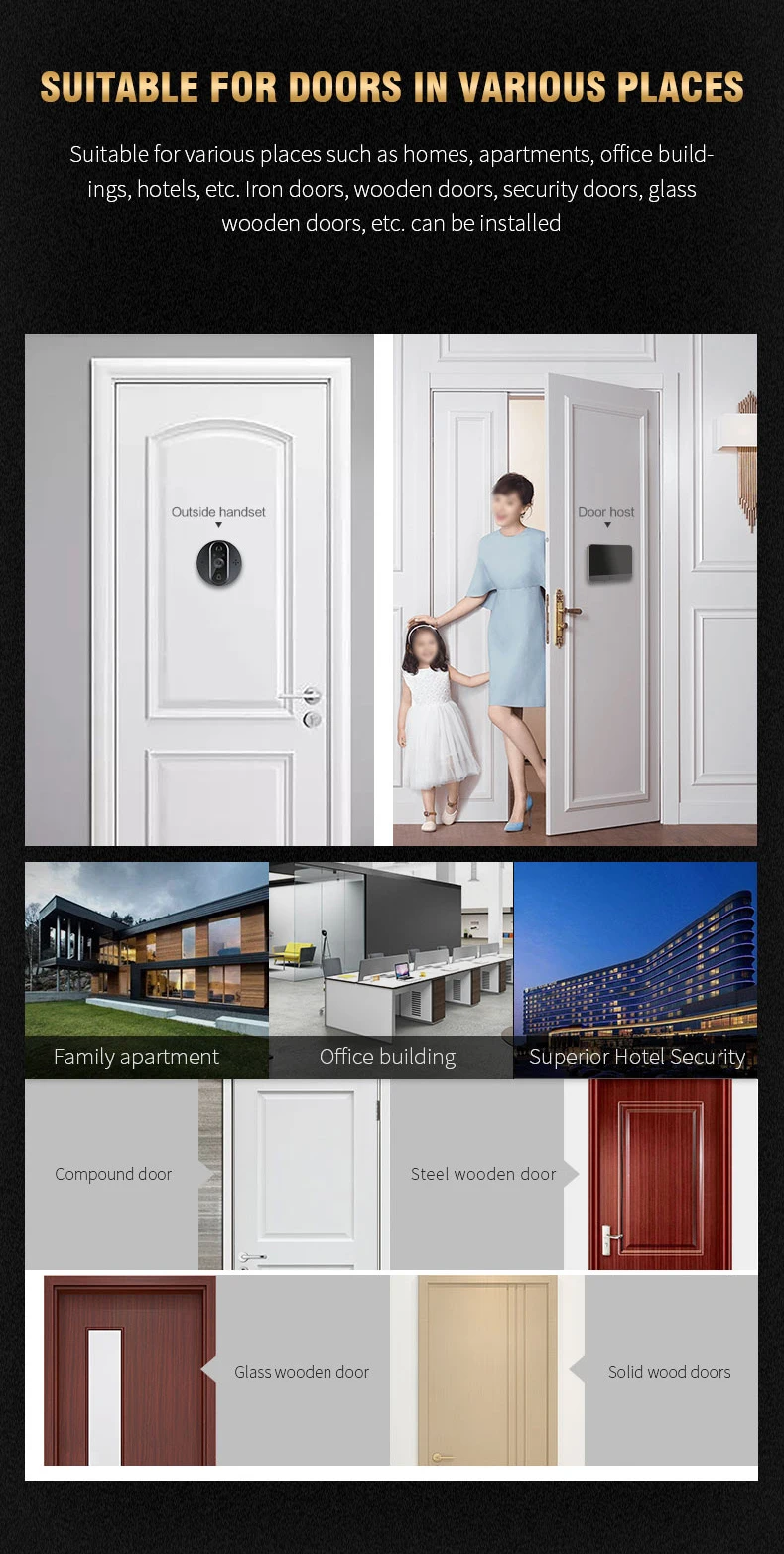 >>>Suitable for various places such as homes,apartments,office buildings,hotels,ect,Iron doors,glass wooden doors,etc,can be installed.