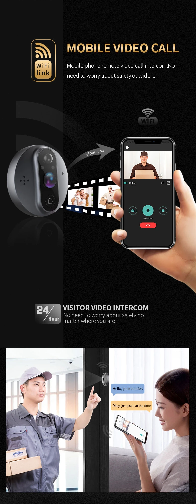 >>>24-hour Mobile phone remote vidio call intercom,no need to worry about safety outside.