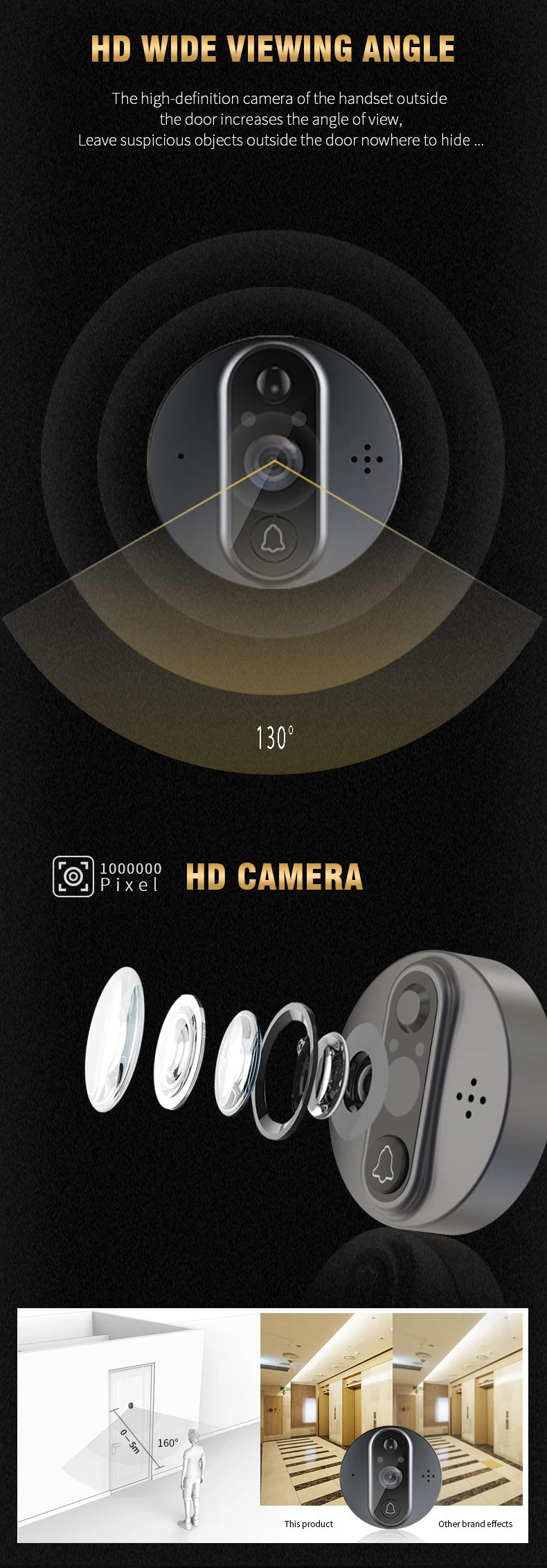 >>>The high-defintion camere of the handest outside the door increases the angle of view,leave suspicious objects outside the door nowhere to hide.