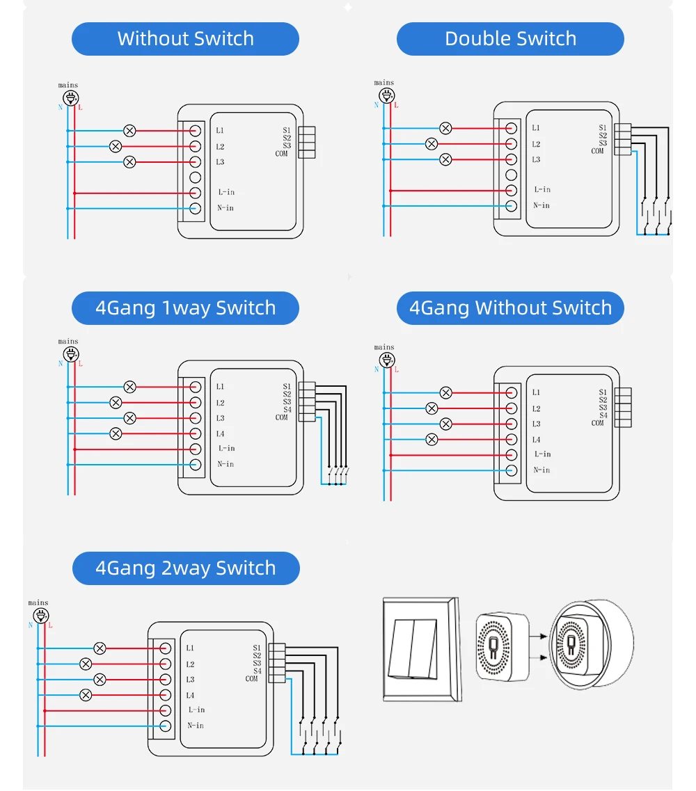 Product type :: 2 Gang/3 Gang/4 Gang WIFI Switch Module