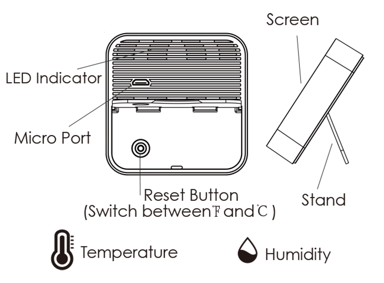 When the sensor is registered to the APP and connected to the Internet, you can monitor the temperature and humidity of the room in real time anywhere in the world.