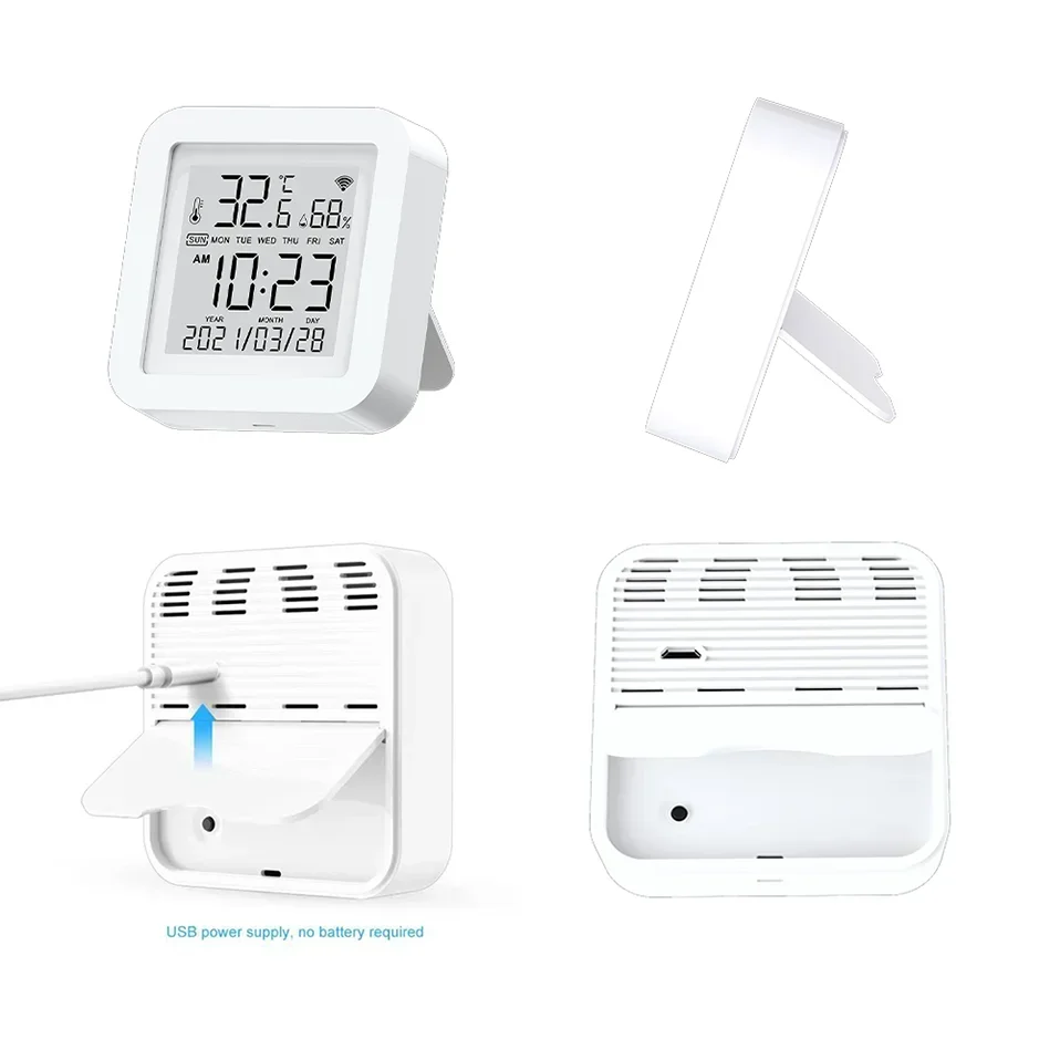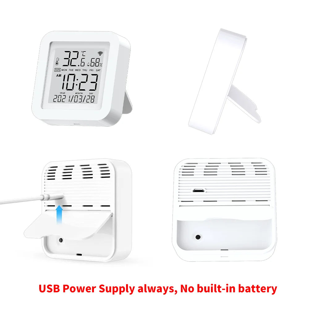 The sensor uses USB power supply. Compared with the battery version, the sensor will monitor the temperature and humidity in real time. The sensor will report when the temperature and humidity changes very little. You can view the changes in the value on the APP or display screen.