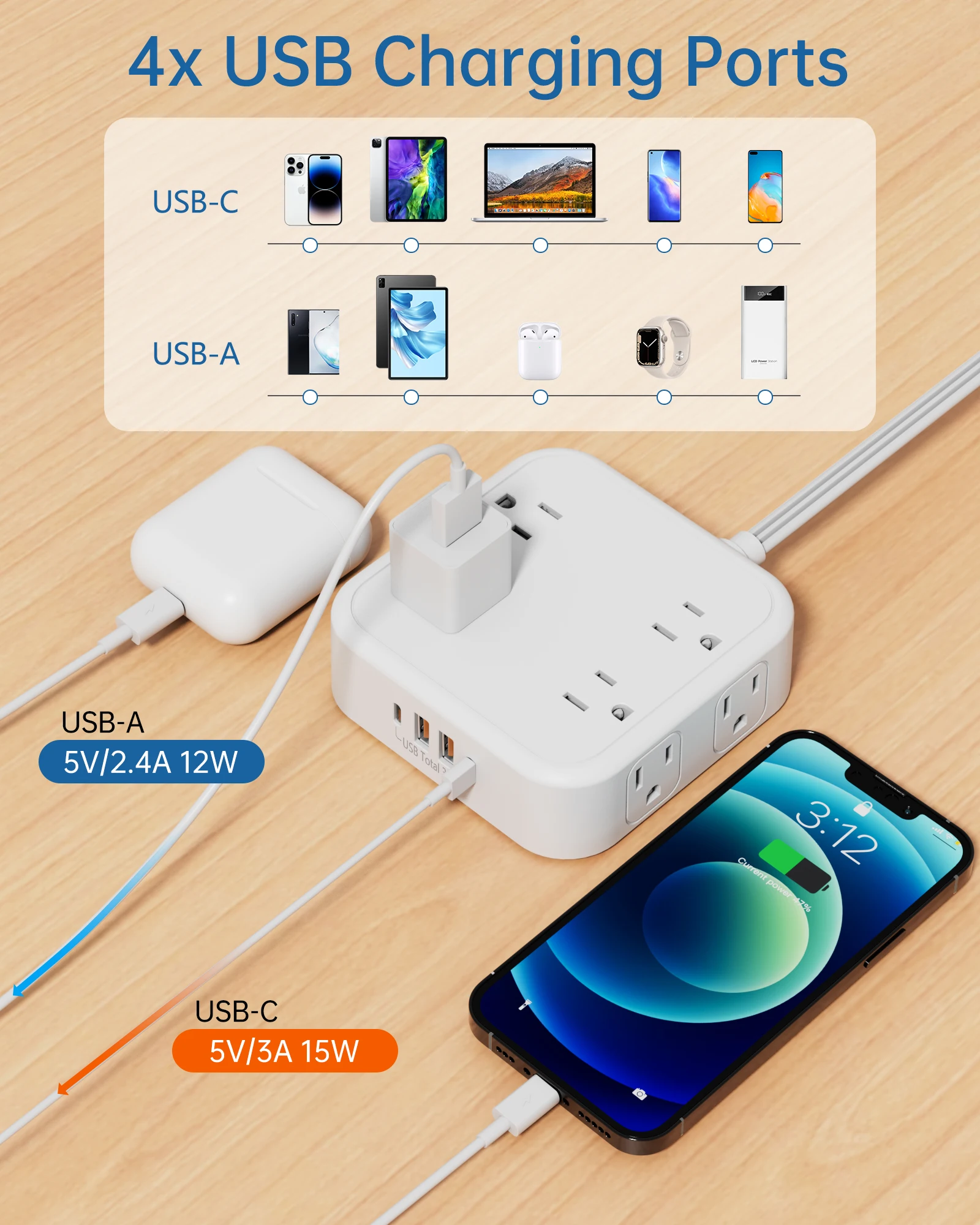 US Plug AC Outlet Multiprise Power Strip 1.5M Extension Cable Multitap Network Filter With USB C Charging Network Filter Adapt
