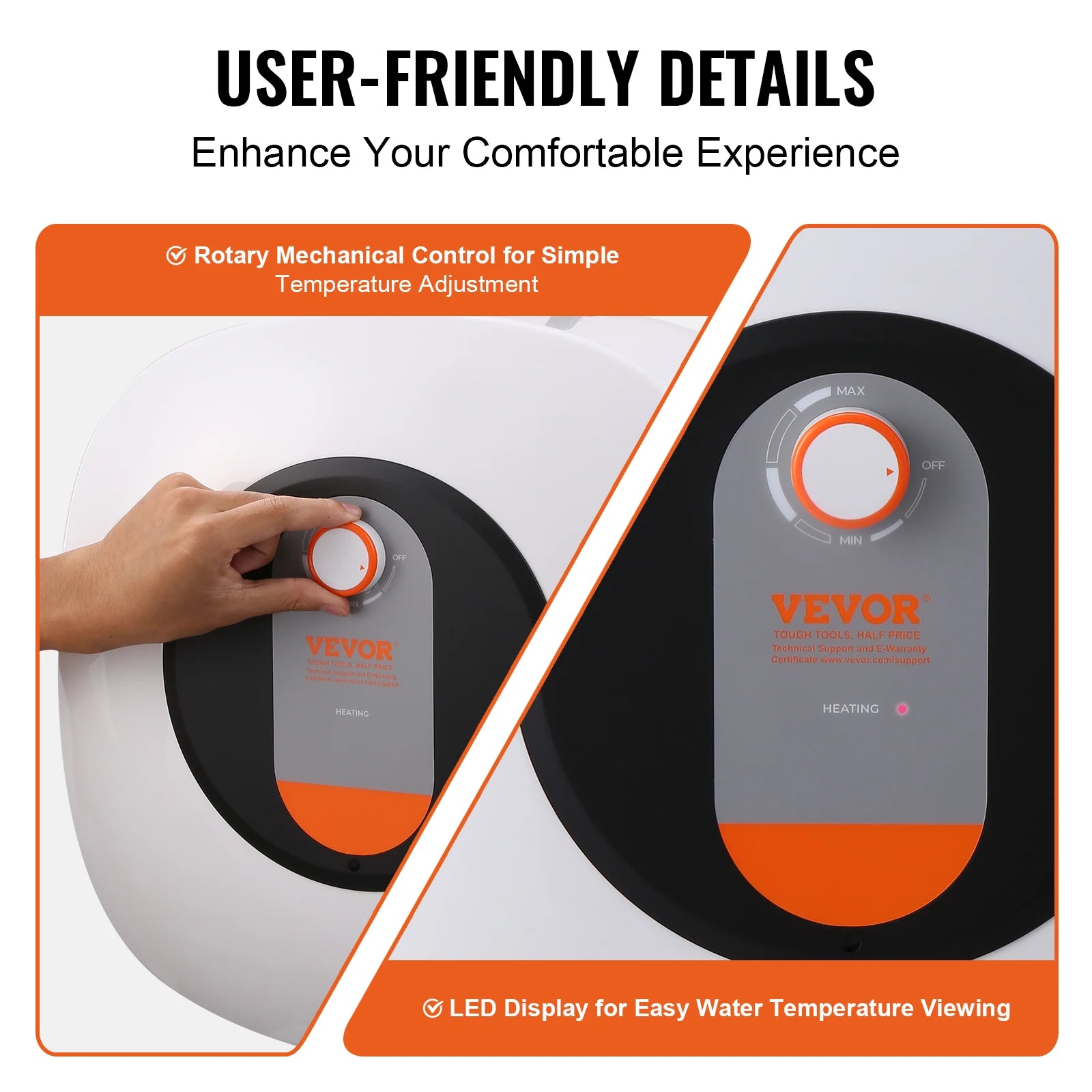 VEVOR Electric Mini-Tank Water Heater, 2.5/4/8-Gal Tank Hot Water Storage, Safety Temperature Pressure Valve,for Kichen Bathroom