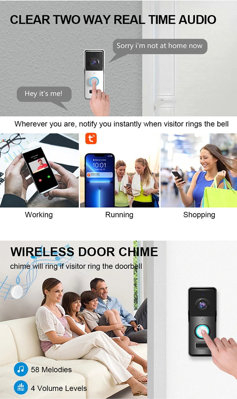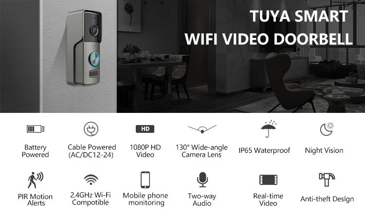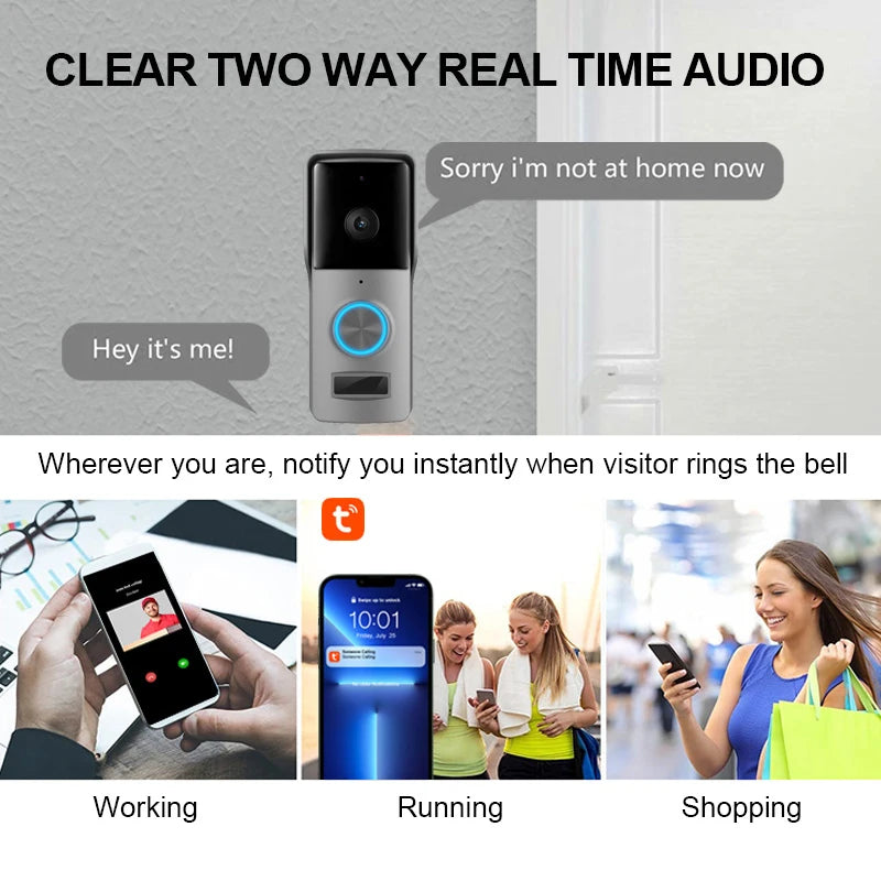 Waterproof 1080P WiFi Video Doorbell DC AC Battery Powered Tuya Smart Security Camera Door Bell Home Wireless Ringing Bell