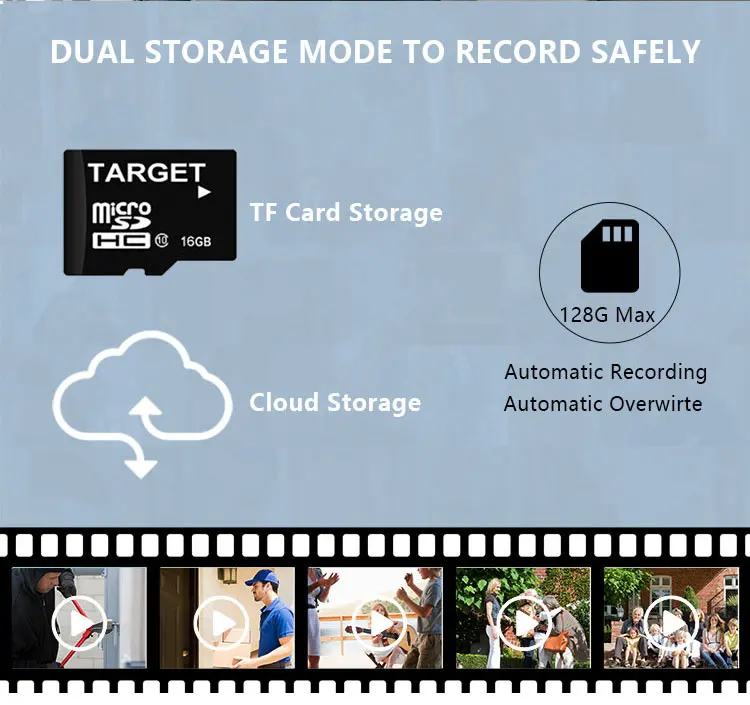 8) Support Cloud Storage and Local Micro SD card Storage (max. 128G)