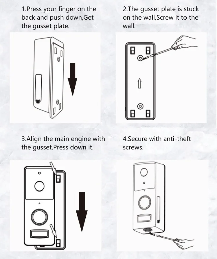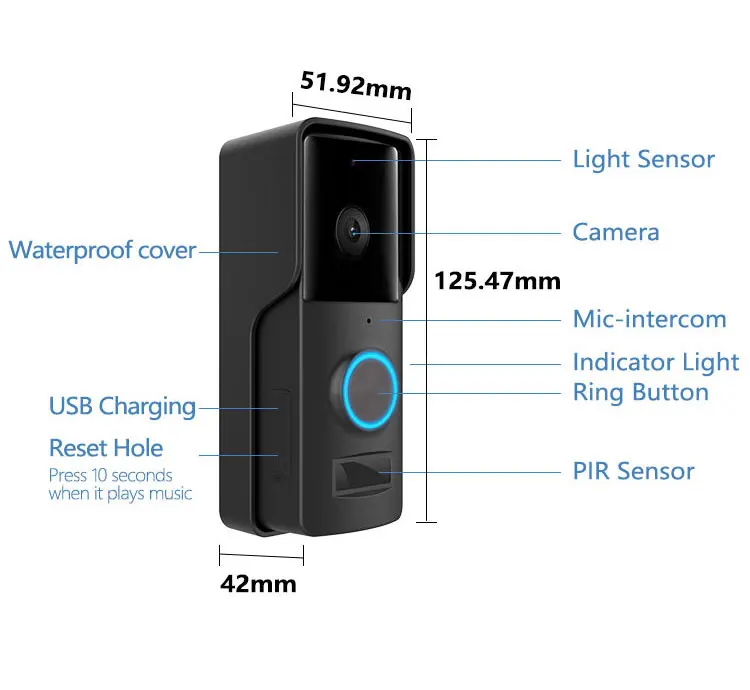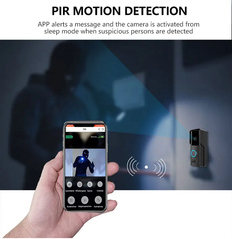 7) Support PIR Motion Detection, push alert notification to mobile phone if someone hovers around the door