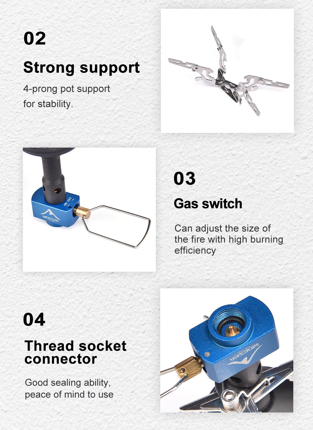 Widesea Camping Gas Burner Outdoor Stove 3300W Camping Equipment Portable Tourist Survival Bushcraft Kitchen