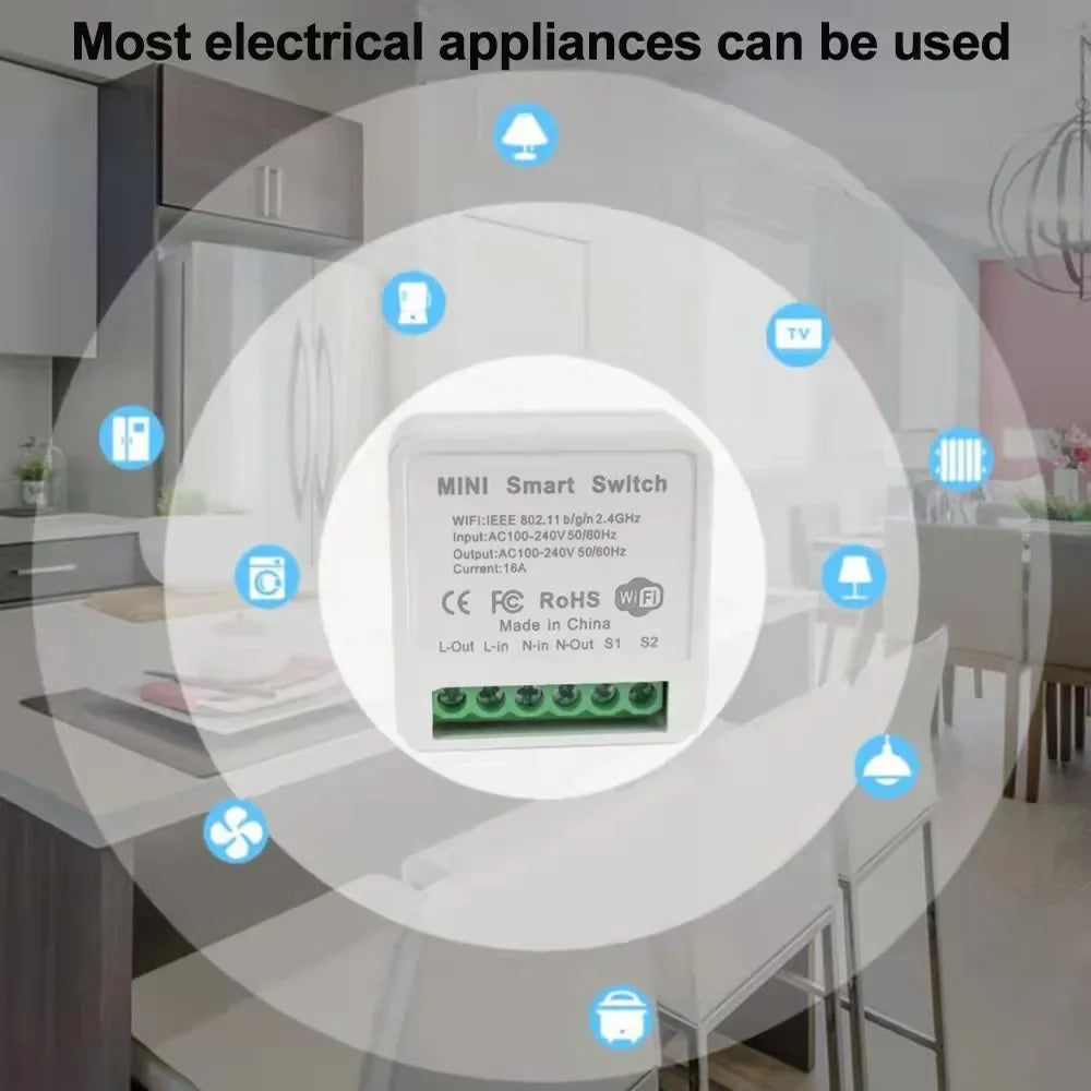 Wifi Mini Smart Switch 16A DIY Light Switches 2 Way Wireless Smart Home with Tuya Smart Life EweLink Alexa Alice Google Home