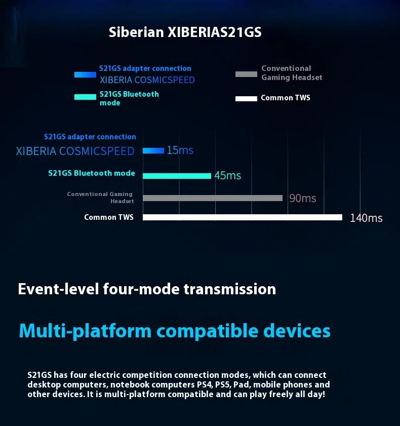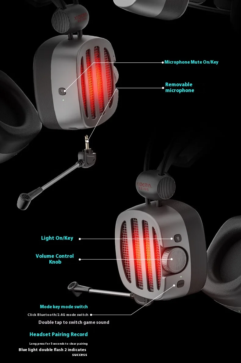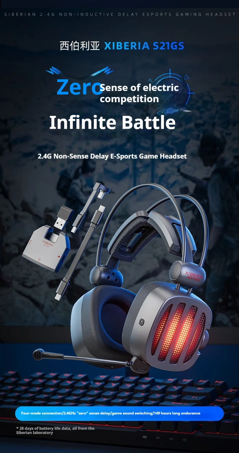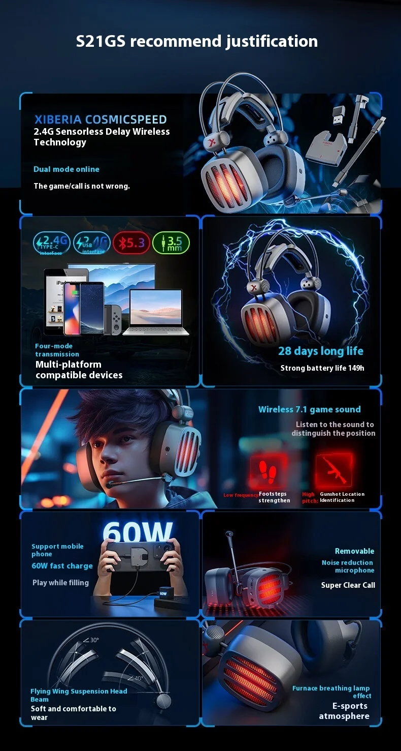 Xiberia S21 GS Headphones With Detachable Noise Cancelling Mic 4-Mode Long Endurance Ultra Low Latency Custom Gaming Headphones