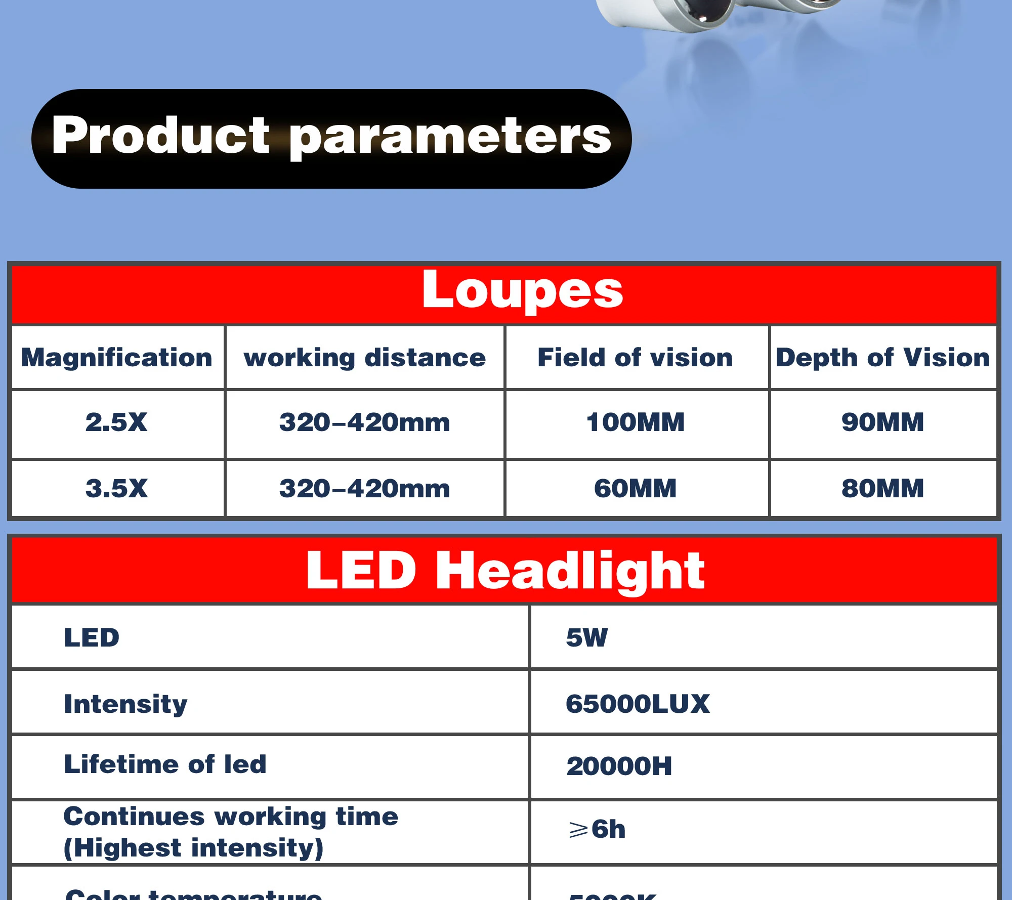 XND Dental Magnifier Binocular Magnifier Focusing Headlight 2.5X 3.5X Adjustable Interpupillary Distance Optical Surgical Type